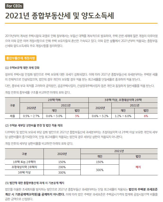 [칼럼]2021년 종합부동산세 및 양도소득세